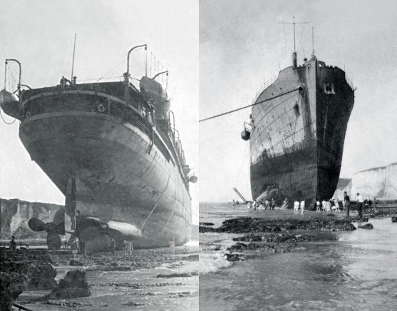 Le Compiègne échoué devant les falaises de Fécamp.© droits réservés