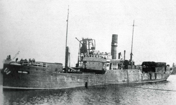 Le cargo Gure-Herria, de La Morue Française qui, sous le nom de Mulhouse, a pratiqué la contrebande d'alcool. Il pratiqua ensuite la pêche morutière avec des doris, que l'on voit ici empilés à l'arrière du navire.© Droits réservés, collection Jack Daussy